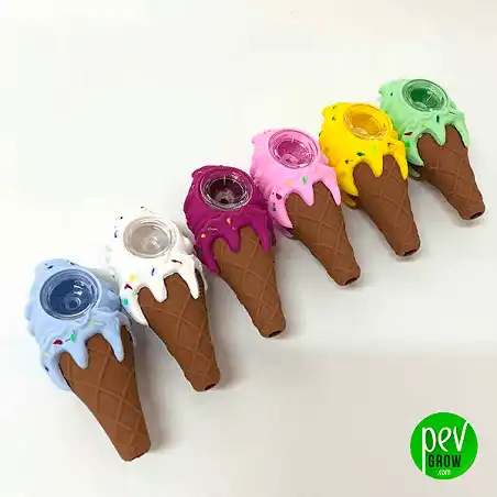 Questa pipa in silicone a forma di gelato è progettata con materiale morbido, altamente resistente agli urti e facile da trasportare ovunque. D'altra parte, non è tossica e non altera gli effetti rilassanti o i sapori della cannabis, permettendo ad un'aria tranquilla di fluire attraverso di essa.