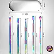 Questo kit è realizzato in acciaio inossidabile, garantendo non solo una durata sorprendente ma anche una manipolazione precisa e sicura. La sua finitura in tonalità rainbow aggiunge un tocco estetico che trasformerà ogni utilizzo in un'esperienza non solo funzionale, ma anche visivamente attraente. Il tappetino in silicone, resistente al calore e facile da pulire, è perfetto per mantenere il tuo spazio di lavoro impeccabile e senza residui.
