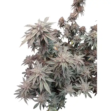 In crescita le foglie sono verde scuro, in fioritura si gode di fertilizzante... Prende molto spazio nella scatola, appena appaiono i primi pistilli, la pianta non fa altro che produrre tricomi, uno spettacolo per gli occhi. L'odore, se l'aspetto visivo è fantastico, l'odore è forte e avvolgente, persino persistente (filtro a carbone obbligatorio)!!! Ho avuto la fortuna di terminare la fioritura durante le temperature negative, i colori sono sublimi (verde, blu, viola e rosso scuro). Infine, la sostanza, pesante, ti dà un colpo duro duro!!! Per i principianti da evitare altrimenti è un guaio assicurato!!! lol