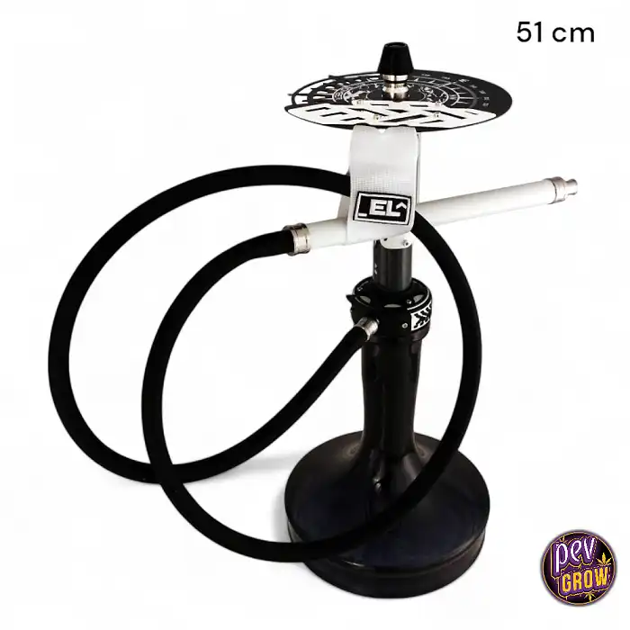 Questa elegante shisha si distingue per i suoi materiali di prima scelta e il design intelligente. Il corpo in alluminio anodizzato nero non solo le conferisce un aspetto sofisticato, ma garantisce anche durabilità e resistenza alla corrosione. La base in vetro, oltre a essere un elemento estetico di grande impatto, permette di monitorare il livello dell'acqua e la densità del fumo. Include un tubo in silicone flessibile e un bocchino in alluminio, entrambi facili da pulire e igienici. Inoltre, il diffusore rimovibile ti consente di personalizzare il tiraggio, rendendolo più leggero o più intenso a seconda delle tue preferenze. Con un'altezza di 51 cm, è la dimensione ideale per un uso domestico, senza rinunciare alla presenza scenica.