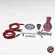 La Shisha Malik Khouribga Broken Glass Red 38 cm è un'elegante pipa ad acqua con un design unico in vetro rotto rosso. Questo modello include due tubi, una ciotola in ceramica e una base stabile, ideale per godere di un'esperienza di fumo condivisa e sofisticata.