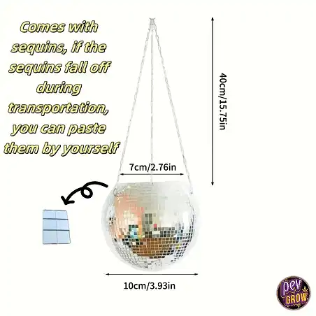 L'installazione del tuo vaso sospeso è semplicissima. Grazie al suo design leggero e al gancio integrato, puoi appenderlo facilmente in qualsiasi punto desideri. Posizionalo vicino a una finestra per sfruttare al massimo la luce naturale e godere dei suoi riflessi durante il giorno. Per la sera, una piccola fonte di luce puntata verso il vaso amplificherà l'effetto discoteca, trasformando completamente l'ambiente. È perfetto per piccole piante verdi, succulente o anche per le tue piante di cannabis, aggiungendo un tocco di stile inaspettato.