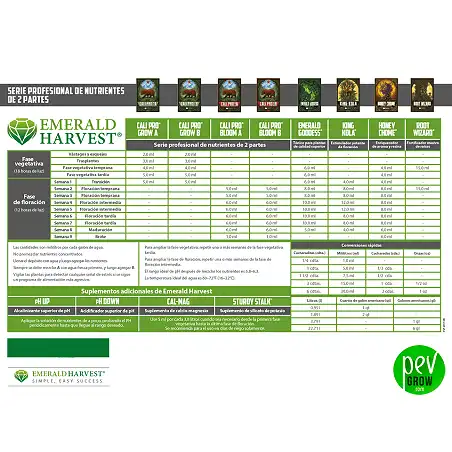 Pevgrow solo te ofrece los mejores productos del mercado, y con el kit de muestra de Emerald Harvest no quedarás decepcionado, la marca ha ganado 5 veces seguidas el premio “Best Nutrient Company”.