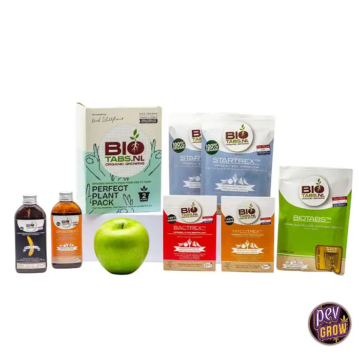 El Perfect Plant Pack (PPP) de BioTabs es un kit de fertilizantes orgánicos diseñado para simplificar el cultivo de hasta dos plantas, desde la germinación hasta la cosecha. A diferencia de otros packs, este kit incluye no solo los clásicos Startrex, Mycotrex, Bactrex, Orgatrex y las pastillas BioTabs de liberación lenta, sino también el potente potenciador de floración Bio PK 5-8. Es la opción ideal si buscas una estrategia fácil y efectiva para obtener cosechas saludables con un sabor y aroma inigualables.