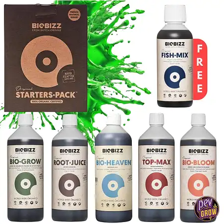 El Kit Mini Starter Pack Completo Biobizz incluye Bio Grow, Bio Bloom, Root Juice, Top Max y Bio-Heaven. Diseñado para cultivadores que buscan una fertilización orgánica completa, este kit asegura un crecimiento vigoroso y una floración abundante en tus plantas de cannabis. Ideal para pequeños cultivos en interiores o exteriores.