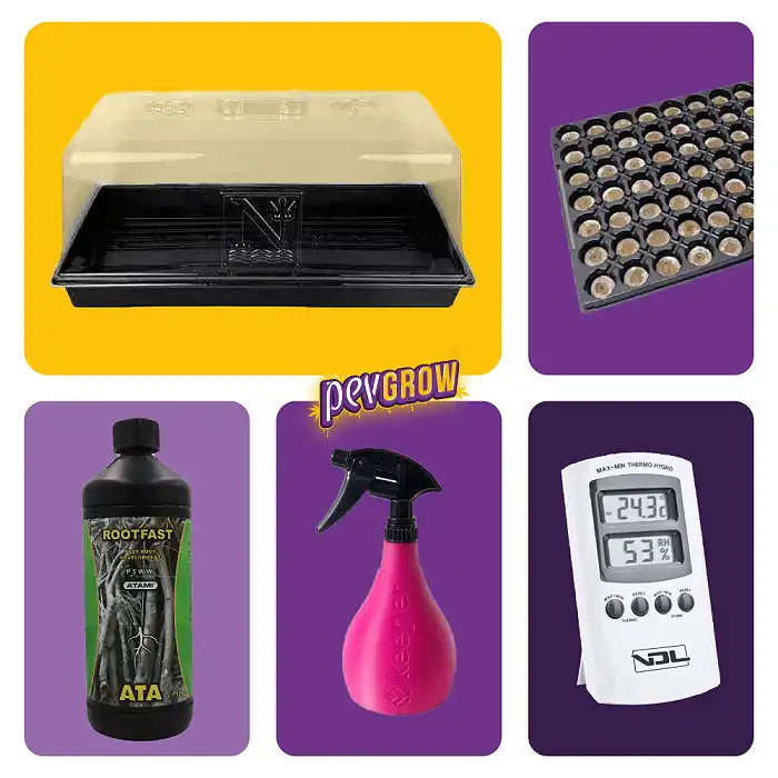 El Kit para Germinar Semillas Completo de Pevgrow está diseñado para ofrecerte todo lo necesario para iniciar tu cultivo de cannabis con las mejores condiciones posibles. Este kit es perfecto para quienes buscan asegurar un proceso de germinación exitoso, proporcionando un entorno controlado y optimizado que maximiza el desarrollo de tus semillas desde el primer día.