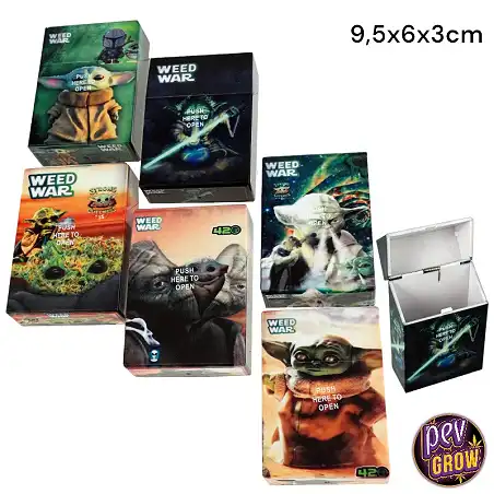 Weed War cigarešu etvija 9,5 x 6 x 3 cm ir galīgais uzglabāšanas risinājums, kas apvieno cietu aizsardzību taviem smokiem ar jautrākajām Star Wars parodijām, nodrošinot, ka tavi zaļumi paliek drošībā, sakārtoti un ar stilu, kur vien tu ej.