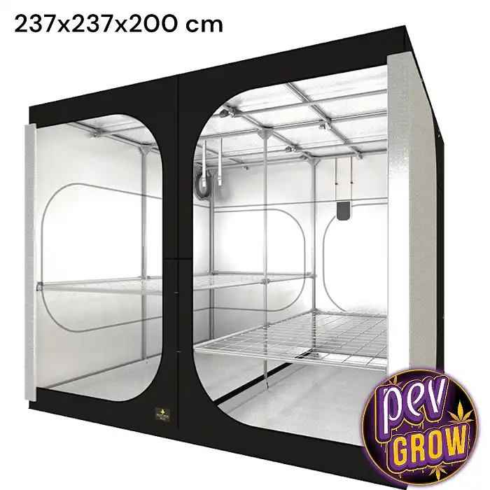 Pirmkārt, jūs sajutīsiet mieru. Zinot, ka jūsu vide ir noslēgta un droša, jūs varat atslābināties. Izturīgie rāvējslēdzēji viegli slīd, ikdienas pārbaudes kļūst par baudu, nevis par slogu. Iekļautais WebIT tīkls padara augu treniņu (SCROG) ļoti vieglu jau no pirmās dienas, palīdzot jums aizpildīt šo milzīgo 2,4 m kvadrātveida latīšu kroku maksimālai ražai.