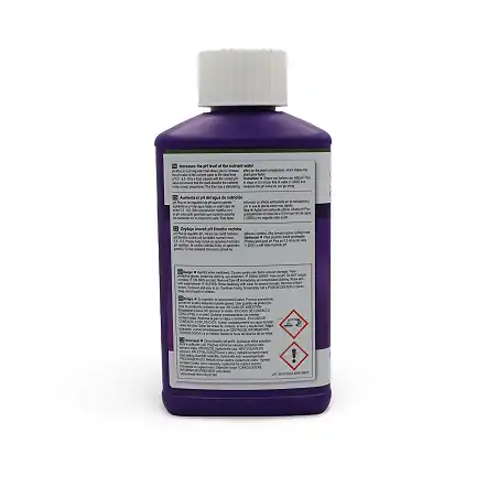 Sāciet ar 0,5 ml uz litru un pakāpeniski pielāgojiet. Viensmēr izmantojiet kalibrētu pH mērītāju. Precīzais daudzums atkarīgs no jūsu ūdens un mēslojumu daudzuma.