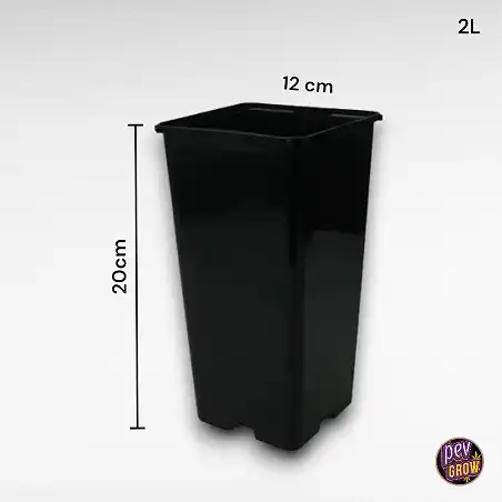 Las macetas alargadas cuadradas simplifican el cultivo con clones, permitiendo hasta 90 plantas por m². Con 7 días de crecimiento y 50 de floración, la cosecha está lista en menos de 2 meses. Perfectas para esquejes y germinación.