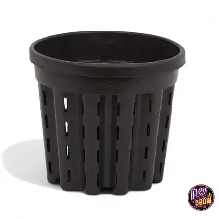 Su diseño con ranuras verticales internas dirige las raíces hacia abajo y hacia afuera, evitando que giren en círculo en el fondo de la maceta, lo que promueve un sistema radicular más ramificado y eficiente.