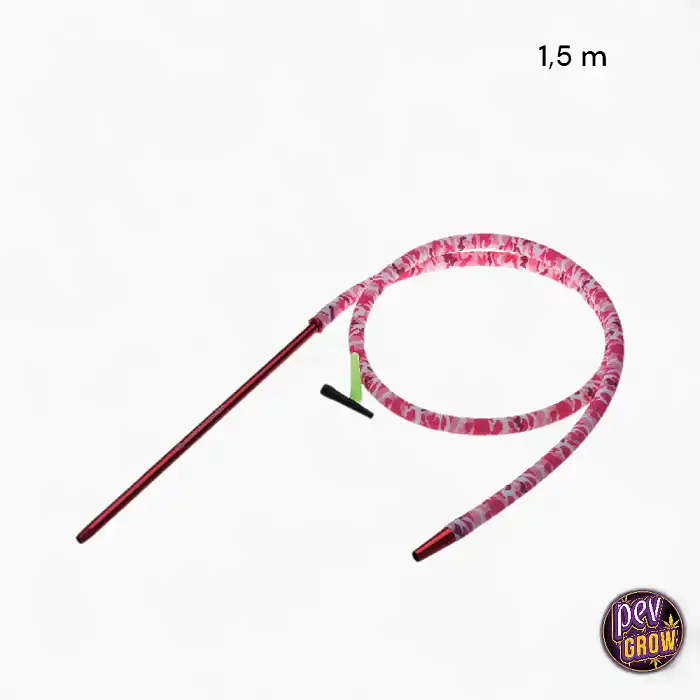 Esta manguera de 1,5 metros no solo es un accesorio, es tu compañera ideal para esas noches de shisha. Confeccionada en silicona de alta calidad, promete durabilidad y facilidad en cada uso. La boquilla de aluminio añade un toque moderno, mientras que el llamativo diseño en camuflaje rosa la convierte en una elección perfecta si quieres que tus accesorios destaquen también en estética.