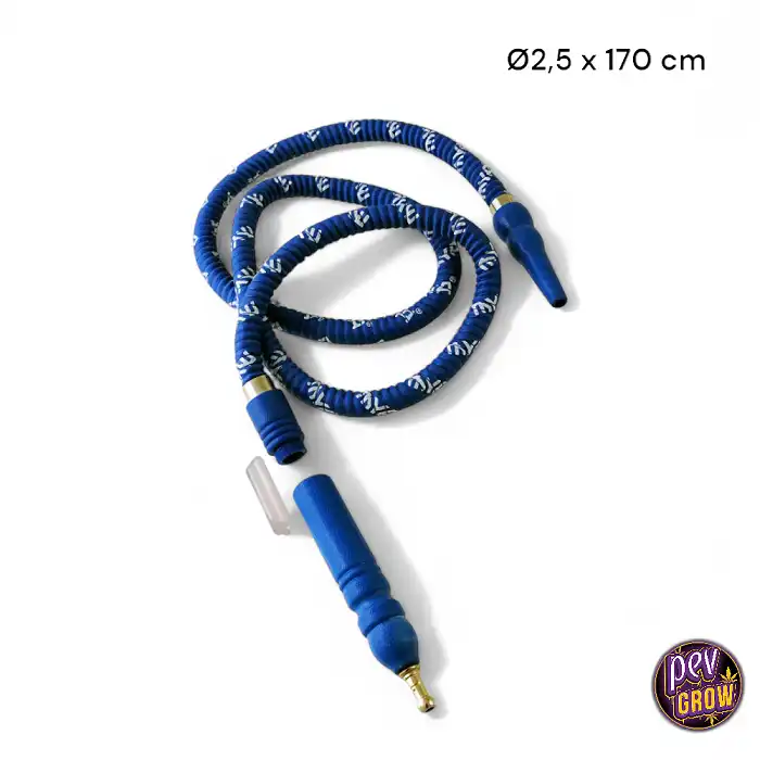 Fabricada con materiales de alta calidad, esta manguera cuenta con un diámetro de 2,5 cm y resalta en un atractivo color azul. Su diseño no solo es visualmente agradable, sino que también es altamente funcional, manteniendo la refrigeración del humo por más tiempo. Gracias a su longitud, disfrutarás de una experiencia de fumar sin limitaciones, brindándote versatilidad y un acceso cómodo a cada calada.