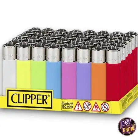 El Mechero Clipper Classic Large Translúcido permite ver la cantidad de gas restante. Ofrece 3000 encendidos por recarga, es recargable y tiene prensador para tabaco. Disponible en varios colores y en packs de 48 unidades.