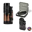 Imagina la satisfacción de encender tu puro o cigarrillo con una llama potente y estable, incluso en las condiciones más ventosas. La triple llama turbo de este mechero soplete te proporciona un calor intenso y uniforme, asegurando una combustión perfecta y un sabor puro en cada calada. Siente la robustez del metal en tu mano y la precisión del cortapuros integrado, que te permite preparar tus puros con un corte limpio y milimétrico. Es una experiencia que eleva tu ritual de fumado a otro nivel, ofreciéndote control y elegancia en cada uso.