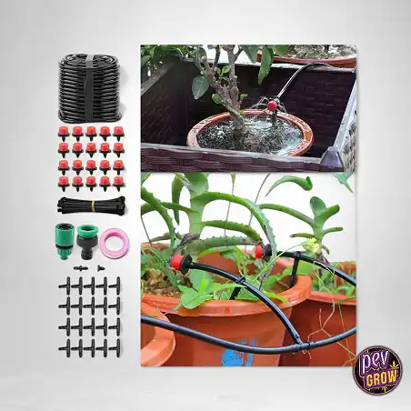 Het 20m Automatische Druppelsysteem is jouw ticket naar vrijheid, en verandert het vervelende klusje water geven in een volledig geautomatiseerd proces dat precisie en consistentie garandeert voor jouw crop. Dit systeem biedt een professionele oplossing om je planten altijd met het juiste wateraandeel te hydrateren, zonder giswerk of fysieke inspanning van traditionele kweekmethodes.