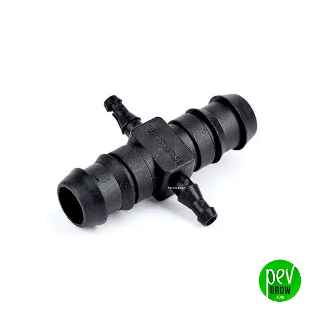 De Cross Union 16-6 mm is het strategische onderdeel dat u nodig hebt om een eenvoudige slangopstelling om te zetten in een professioneel, hoogwaardig irrigatienetwerk. Hiermee kunt u aftakken vanaf uw 16mm hoofdvoerlijn rechtstreeks naar individuele planten via 6mm microbuis, zodat elke pot precies de juiste hoeveelheid vocht krijgt, zonder lekkage of drukverlies.