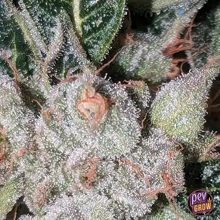 Oogstklar: Volg de trichomen—melkachtig voor een energiek effect, amberkleurig voor diepere rust. Spoel 7–10 dagen voor de oogst. Droog langzaam bij 18–22 °C (64.4–71.6 °F) en 50–60% RV voor een soepele rook.