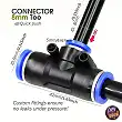 T-koblinga er utforma for standard mikrovanningsslang (typisk 4/7 mm eller liknande variantar brukt i hydroponikk). Ho gjer det mogleg å kople fleire sprøyter i rekkje.