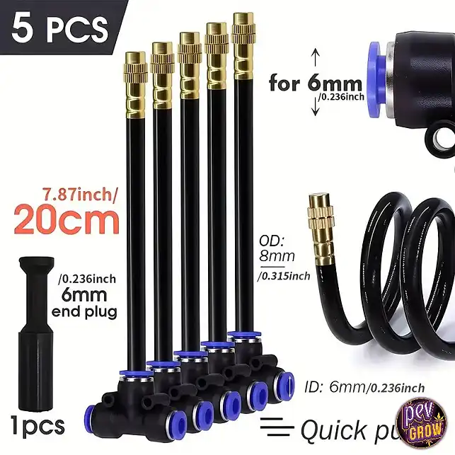 Løysing: Denne 20 cm dryppvatningssprøyta løyser desse problema med ein gong. Ved å integrere denne sprøyta i oppsettet ditt, sikrar du at kvar einaste plante får nøyaktig same mengd vatn same tid. Ho lagar ei fin tåke som trengjer inn i substratet jevnt, oksygenerer rotene og maksimerer opptaket av næringsstoff medan du sit tilbake og slappar av.