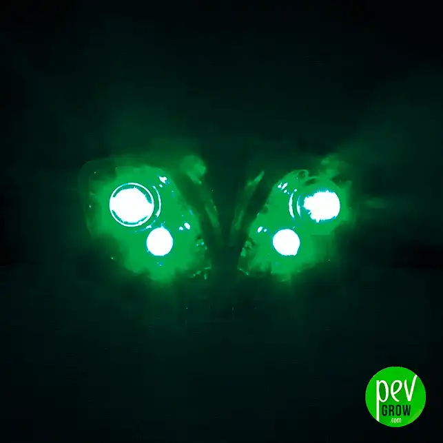 Den grøne LED-hovudlampa er eit spesialisert verktøy laga for å kunna verkje inne i dyrketeltet ditt under mørkeperioden utan å forstyrra plantane sine hormonelle sirkel. Hovudfordelen er det grøne spekteret som cannabisplantane i praksis er "blinde" for, noko som gjer at du ser godt medan avlinga framleis er kjemisk i mørke.