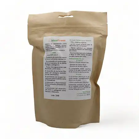 MealFrass er mye mer enn bare en næringskilde; det er en 100 % organisk gjødsel med insektmiddeleffekt laget av avføring fra Tenebrio molitor (melbille) som virker som et tosidig våpen: den gir plantene dine balansert næring med NPK 4-4-3 og beskytter dem ved å utløse deres naturlige forsvarsmekanismer. Ved å ta i bruk dette tørre, luktfrie og enkelt å håndtere produktet, gir du plantene dine høykvalitets organisk materiale og kitin – et nøkkelstoff som «bio-hacker» planten din til å holde seg trygg mot sykdommer.