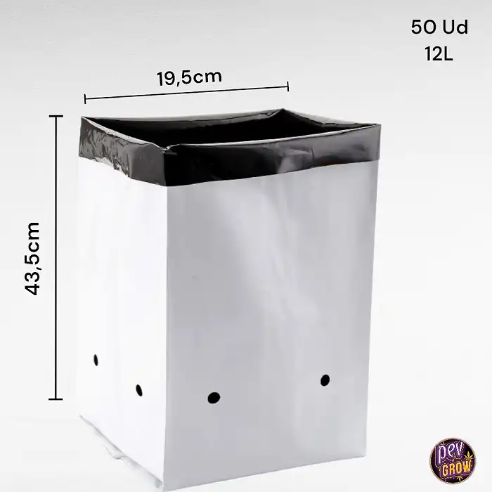 El Grow Shop Pevgrow, os trae estas macetas tipo bolsas de plástico blanca para cultivo.