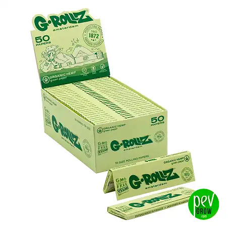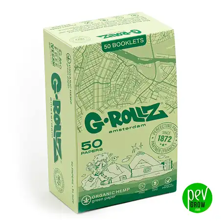 El papel de fumar de cáñamo orgánico de G-Rollz ha sido fabricado en Francia a partir de fibras de plantas de cáñamo cultivadas de forma orgánica, que se prensan sistemáticamente para conseguir el papel más suave y fino posible, y se combinan con savia de acacia para darle un acabado totalmente natural. Su tamaño es de 1 1⁄4- KS similar al de un cigarro de cualquier marca comercial, cada librillo contiene 50 papeles y cada caja se presenta con 50 librillos o cuadernillos.