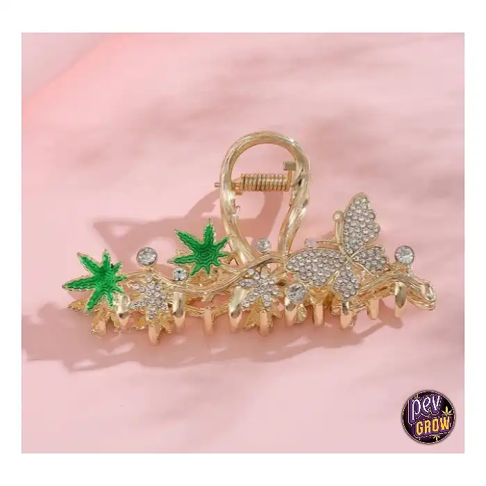 ¿Buscas un accesorio que hable de ti sin decir una palabra? El Pasador Pelo Mariposas y Cannabis es la elección perfecta para Alex, y para ti, que valoras la originalidad y la calidad. Este pasador no es solo un adorno, es una declaración de estilo que combina la delicadeza de las mariposas con un guiño a la cultura cannábica a través de su hoja de arce, interpretada por muchos como la icónica hoja de cannabis. Su diseño con diamantes de imitación captura la luz, añadiendo un brillo sutil y sofisticado a tu peinado.