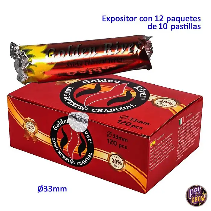 En Pevgrow, tu Head Shop y Parafernalia de confianza, te ofrecemos las Pastillas de Carbón Vegetal Golden River de 33mm en un práctico expositor de 120 unidades al mejor precio. Asegura la calidad y la comodidad en cada una de tus sesiones de cachimba. No esperes más para elevar tu experiencia de fumada con un carbón que te garantiza un encendido rápido, una combustión limpia y una duración excepcional. ¡Haz tu pedido hoy mismo y recíbelo cómodamente en casa!