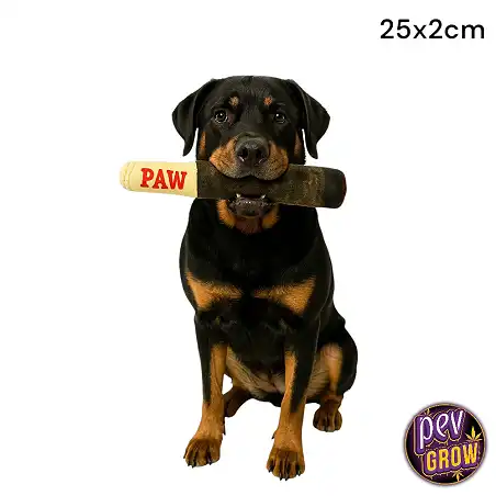 Este peluche destaca por su original diseño en forma de gran cigarro, un guiño divertido para los dueños que aprecian la estética de la parafernalia. Pero más allá de su apariencia, está construido para durar. Fabricado con materiales de felpa de alta calidad, es resistente a las mordeduras y al uso constante, asegurando que tu mascota pueda disfrutar de él durante mucho tiempo. Su tamaño es ideal para perros y gatos de diversas razas y tamaños, desde cachorros hasta adultos enérgicos.