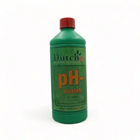 PH - Bloom es un producto presentado por Dutch Pro que se utiliza para bajar los niveles de PH de la solución nutriente de las plantas de cannabis durante su ciclo de floración. Es ácido fosfórico, por lo que además de ayudar a conseguir un PH óptimo del riego, aporta un extra de fósforo que les viene muy bien a las plantas durante esta fase del cultivo.