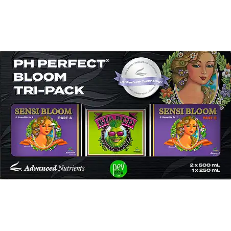 El pH Perfect Bloom es un Tri-Pack que está diseñado para la etapa de floración, optimizando para generar cogollos de mayor tamaño y con un aroma más intenso, pero sin modificar su sabor.