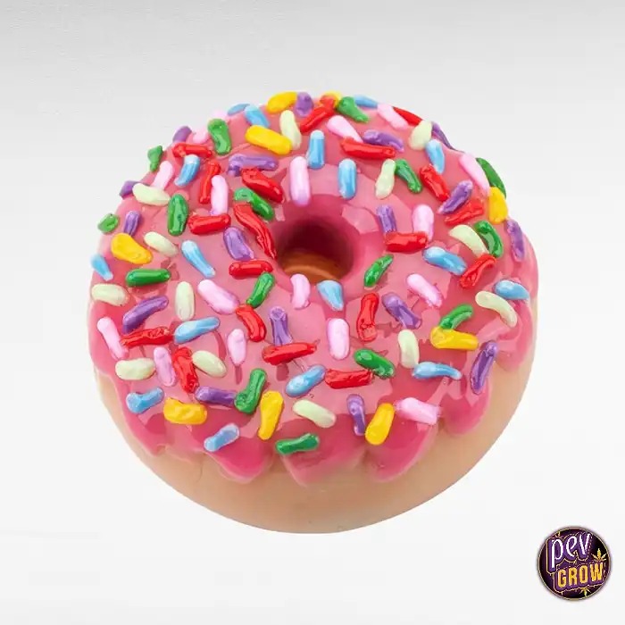 Su diseño único de donut rosado con chispas la distingue de otras pipas, añadiendo un toque de diversión a tus sesiones de fumar.