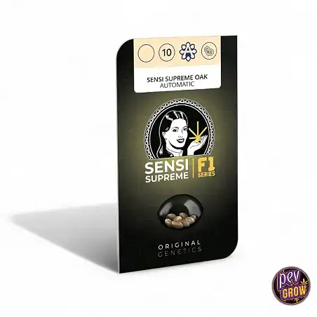 Semenia Sensi Supreme Oak Autoflowering od Sensi Seeds zapewniają duże plony do 350 g/m² już po 55–65 dniach dzięki stabilnej genetyce hybrydy F1 i wysokiemu poziomowi THC (25%).