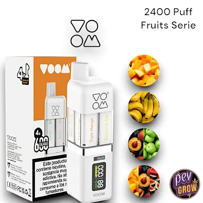 En Pevgrow, tu Vape Shop de confianza, te ofrecemos el Multi Pod VOOM 2400 Puffs Fruits Serie al mejor precio del mercado. Disfruta de la comodidad de un dispositivo recargable con la variedad de cuatro sabores en uno, todo con la garantía de calidad y el envío rápido que nos caracteriza. No esperes más para transformar tu experiencia de vapeo con este innovador sistema. ¡Haz tu pedido hoy y empieza a disfrutar de la libertad de elegir tu sabor al instante!