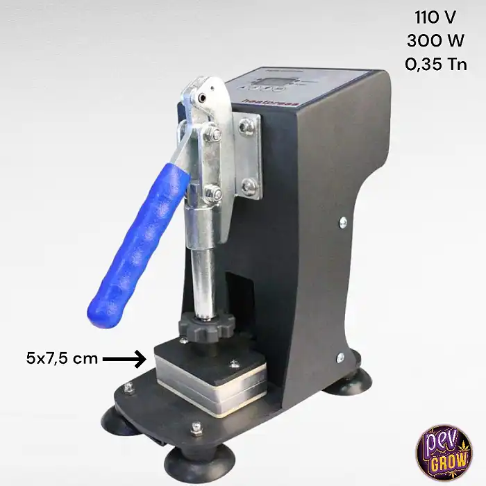 La Prensa Rosin Manual Negra 0.35 Tn está construida con materiales de alta durabilidad y resistencia. Su diseño incluye una placa de 5x7.5 cm, ideal para manejar pequeñas cantidades de material vegetal. Además, su color negro no solo le da un aspecto elegante, sino que también ayuda a mantener la limpieza visual del dispositivo después de cada uso.