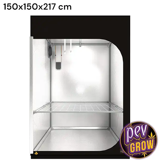 A Tenda de Cultivo Dark Room 150x150x217cm é a solução definitiva para organizar o seu espaço e simplificar a sua configuração. Ao centralizar toda a sua operação dentro desta fortaleza resistente e vedada à luz, recupera o controlo sobre o ambiente, mantendo tudo, desde a humidade até aos odores, perfeitamente gerido num invólucro profissional.