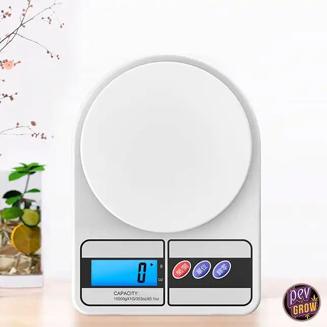 Problema: Acabou de finalizar uma excelente colheita, e chegou o momento da verdade: pesar o resultado. Mas só tem uma pequena balança de precisão de bolso com limite máximo de 500g ou, pior ainda, uma balança de cozinha coberta de farinha e pouco precisa. Acaba por pesar as suas flores em dez lotes diferentes, perde a contagem e fica frustrado porque os números simplesmente não batem certo.