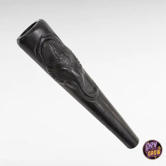 Isto não é apenas um pipo — é uma peça cultural. Esculpido à mão em barro natural e adornado com um motivo de elefante, símbolo de sabedoria e boa sorte em muitas culturas, este chillum de 16 cm transforma cada tragada numa prática consciente e ritualística. É leve, perfeitamente equilibrado e construído para durar, proporcionando tragadas suaves e potentes, sem sabor residual.