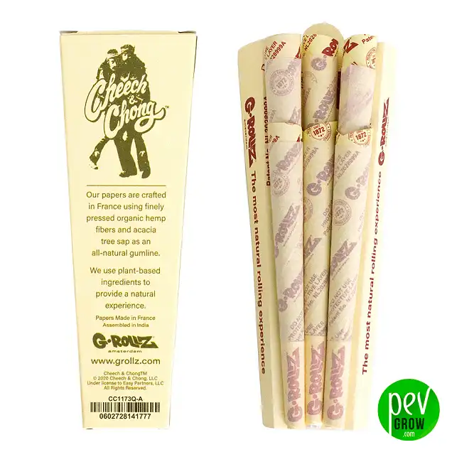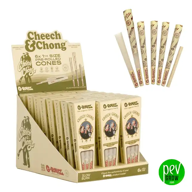 Os 6 cones orgânicos extra-finos KS G-Rollz são o atalho definitivo para um joint perfeito todas as vezes, combinando o estilo lendário da Cheech & Chong com a qualidade premium do papel francês para garantir uma queima lenta e uniforme, sem o incómodo de rolar à mão.