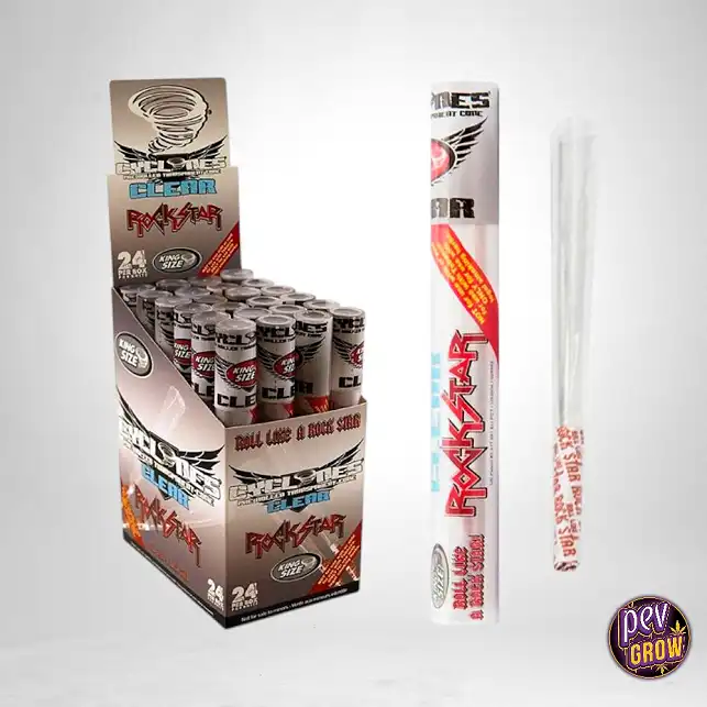 O Cyclone Klear Cone Rock muda completamente o jogo. Por ser pré-enrolado e rígido, garante uma forma perfeita todas as vezes. A sua transparência transforma cada tragada numa experiência visual, e o sabor a Cola adiciona um toque doce que complementa perfeitamente a sua erva. Além disso, vem num tubo rígido que atua como uma proteção, assegurando que o seu joint chega intacto a qualquer lugar. É a atualização que o seu ritual merecia.