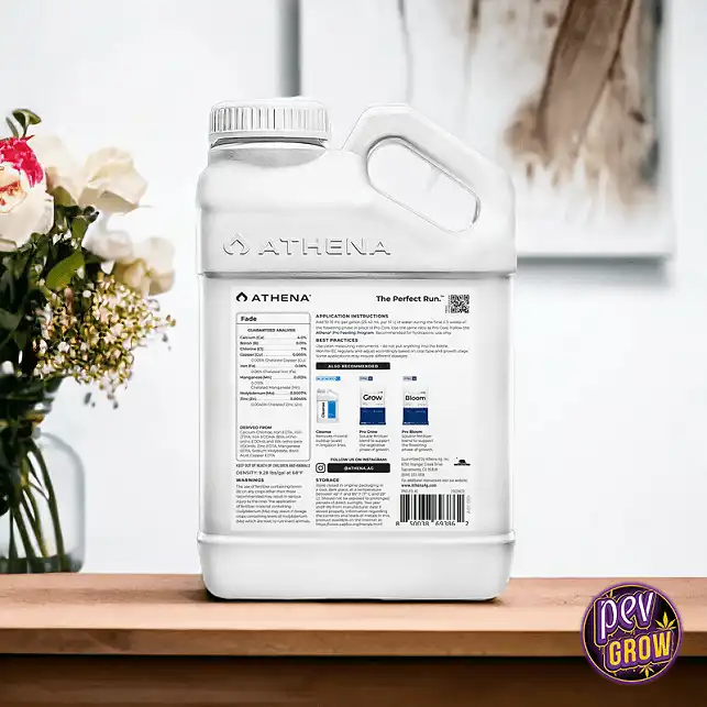 O Athena Fade é a solução inteligente. É o primeiro produto de lavagem concebido para fornecer às suas plantas aquilo de que precisam enquanto remove aquilo de que não precisam. Ao fornecer uma mistura direcionada de cálcio e micronutrientes essenciais sem azoto, o Fade induz as suas plantas a um acabamento natural e sem stress. Esta abordagem precisa encoraja a planta a completar o seu ciclo de vida, canalizando a sua energia final para a produção de terpenos ricos e canabinoides potentes que definem flores verdadeiramente de elite.