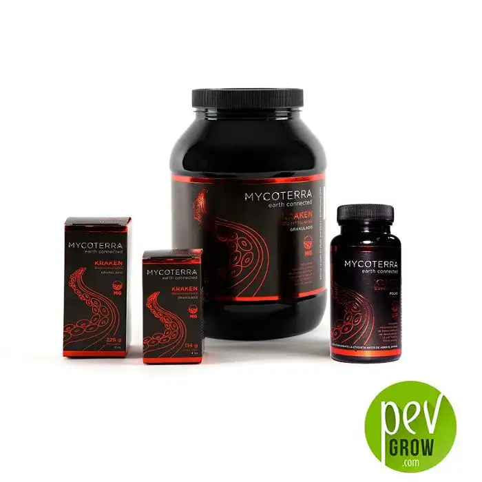 Kraken Mycoterra é a arma biológica que a sua cultura precisa para explodir desde o solo. É um estimulador radicular 100% orgânico formulado com o exclusivo fungo Glomus Iranicum var. tenuihypharium, uma espécie única de micorrizas que coloniza as raízes das suas plantas, aumentando a sua massa até 70% e, consequentemente, impulsionando a colheita final até 40%.