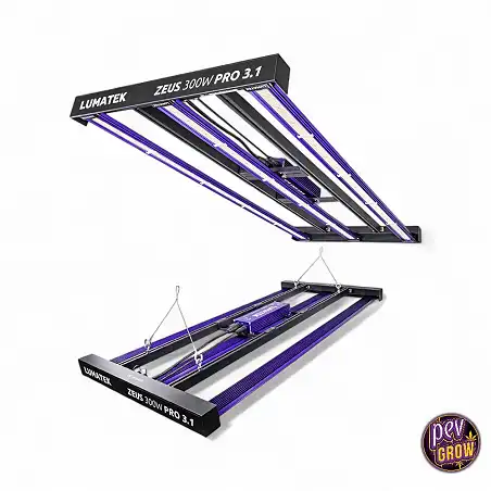 Com a Lumatek Zeus 300W 3.1, resolve estes problemas instantaneamente. O seu design em barra distribui a luz uniformemente numa área de 1,2 x 0,6 m, eliminando pontos quentes. Graças ao seu arrefecimento passivo e alta eficiência (3,1 µmol/J), obtém mais luz com menos calor, mantendo as suas plantas felizes e as suas contas baixas.