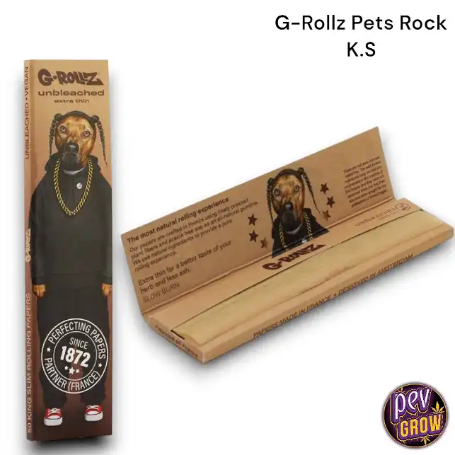 G-Rollz King Size Pets Rock é o kit completo ideal para quem não quer abrir mão de estilo e qualidade, oferecendo mortalhas orgânicas premium, filtros e palito num caderno colecionável. Estas mortalhas francesas definem o que deve ser uma experiência moderna de fumo: limpa, com queima lenta e visualmente impressionante, garantindo que cada tragada seja tão pura quanto as suas ervas merecem.