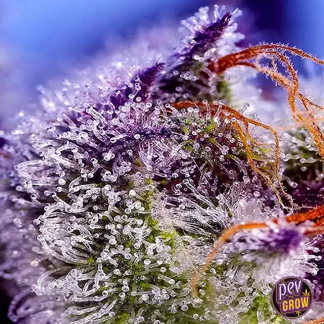 Colheita e refinamento: Lave o substrato 7–10 dias antes. Colha quando os tricomas estiverem leitosos-âmbares. Seque a 18–22 °C e 50–60% HR. Cure durante 2–4 semanas para sabor máximo.