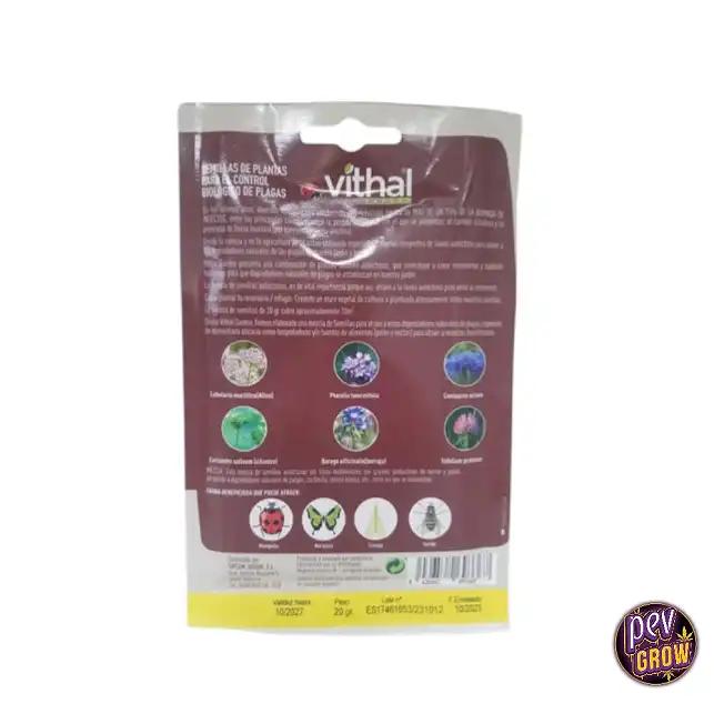 Sementes de Fauna Útil Vithal Garden 20g é o seu exército biológico numa embalagem, uma mistura estratégica de sementes de flores especialmente selecionadas para atrair e manter predadores naturais que caçarão as pragas por si, garantindo uma cultura mais saudável sem a necessidade constante de produtos químicos.