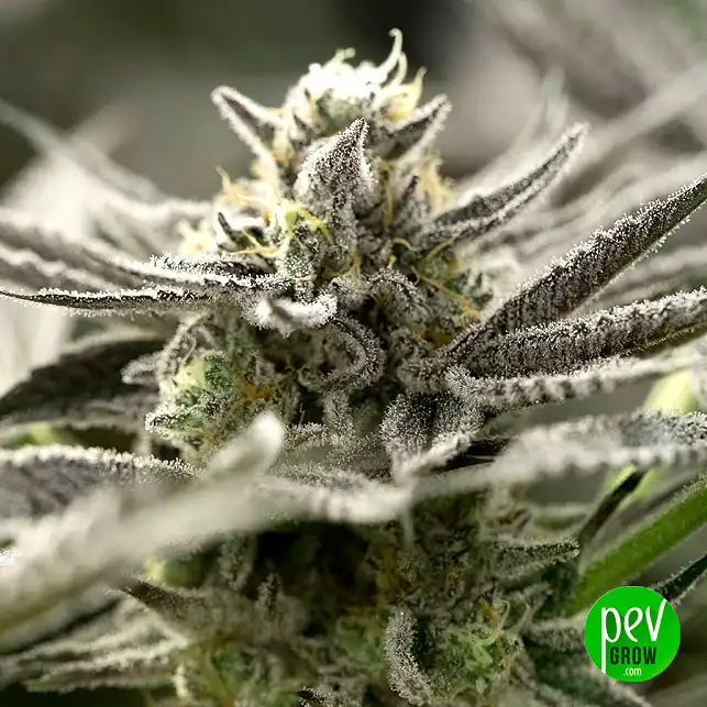 A verdadeira magia acontece na floração. Por volta das semanas 3-4, inicia automaticamente a fase de floração. É então que os terpenos famosos começam a manifestar-se — um bouquet complexo de bagas doces, combustível e pinho começa a encher o seu espaço de cultivo. As flores incham rapidamente, tornando-se densas e completamente cobertas por tricomas brancos e cristalinos. Manter um ciclo de luz consistente de 18-20 horas por dia é essencial durante todo o ciclo para maximizar o seu potencial.