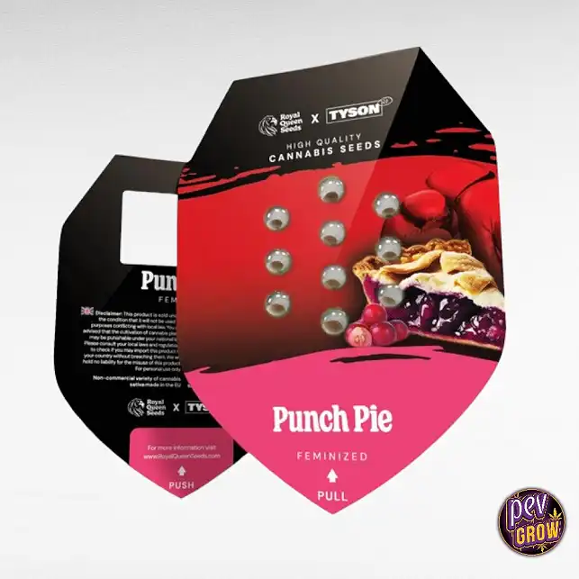 Criada em colaboração com o próprio Mike Tyson, a Punch Pie combina Purple Punch e Purple Kush numa variedade indica 90% potente, concebida para impacto máximo. Não é apenas forte — é inteligente. Baixa, ramificada e de floração rápida, foi desenvolvida para prosperar em interior ou exterior, produzindo até 600 g/m² e um efeito corporal intenso que ataca em minutos. Esta não é apenas mais uma estirpe — é um campeão de peso pesado em forma de semente.